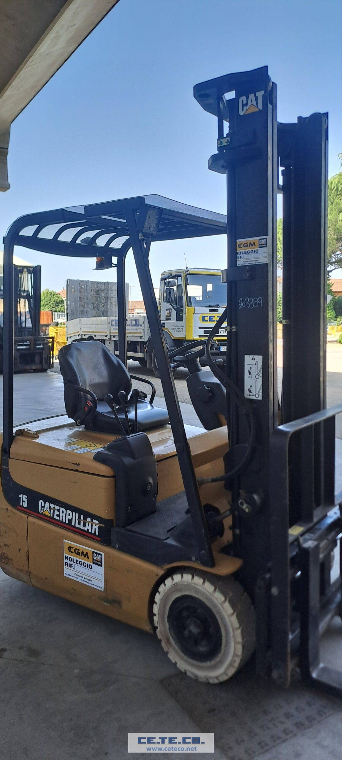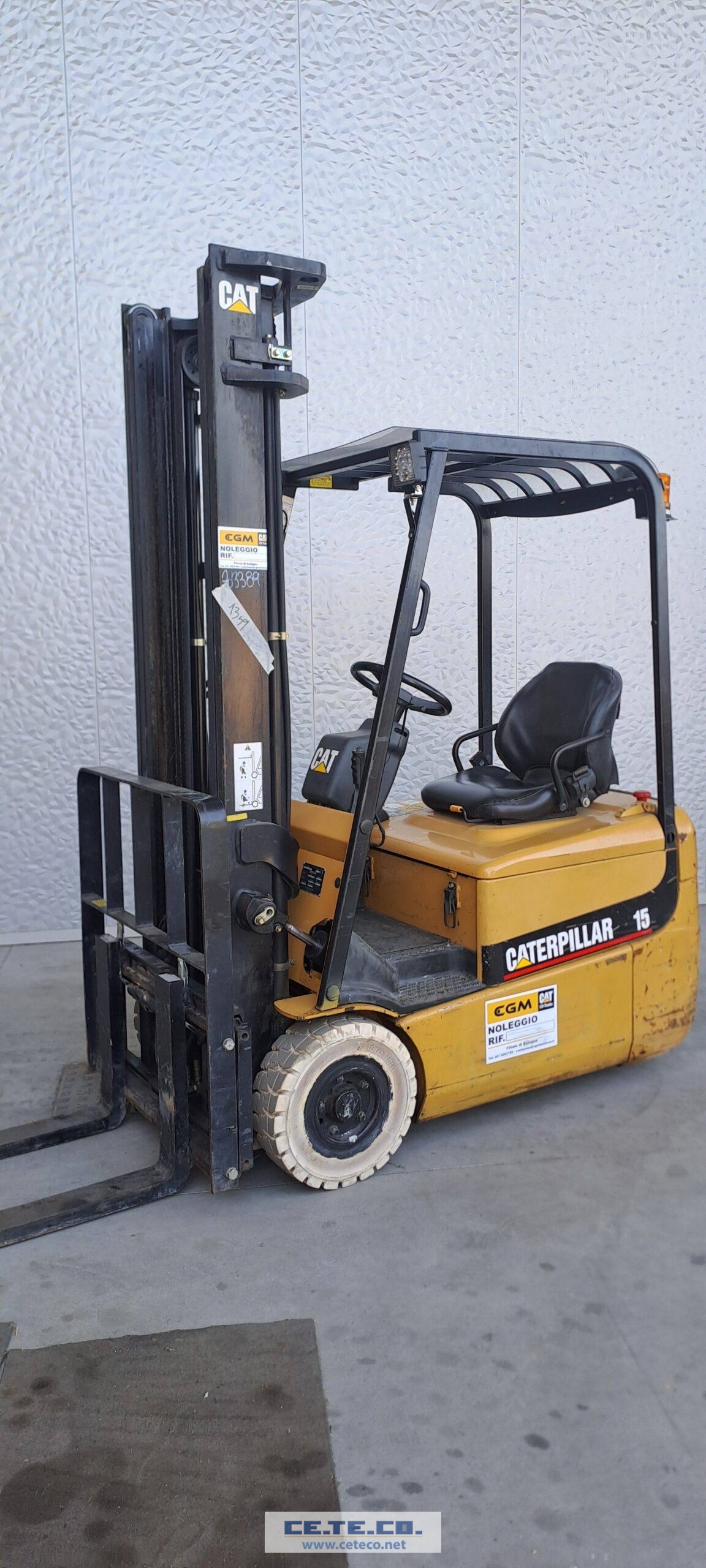 Carrello elevatore Cat mod. Ep 15 Krt , anno 2003 , Colonna Sx 3700 ( H1-2380 ) , traslatore , batteria 24 Volt- 875 con rabbocco , macchina in ottime condizioni di funzionamento e poco utilizzata