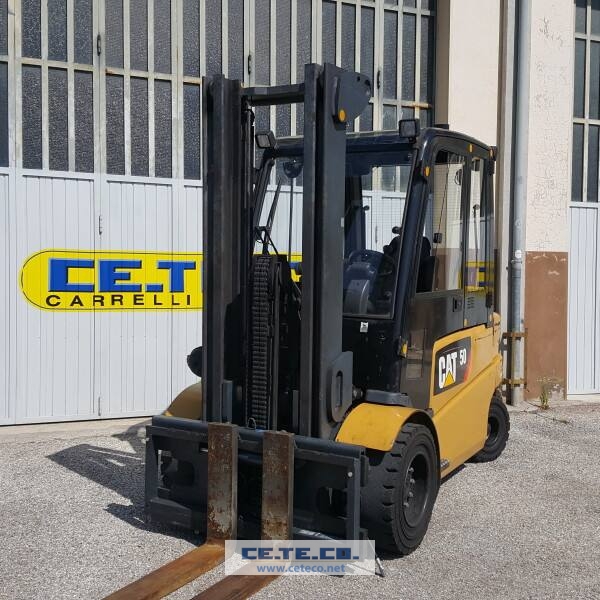 DescrizioneCarrello elevatore Cat mod Ep 50 , anno 2011 , colonna Dxgal 3400 mm ( H1-2450 mm ) completo di 3°-4° via con mini leve e tubazioni idraulica , traslatore , cabina completa di sportelli e riscaldamento , fanaleria , batteria con auto rabbocco . Gomme anti traccia . Macchina in ottime condizioni di funzionamento Informazioni aggiuntive