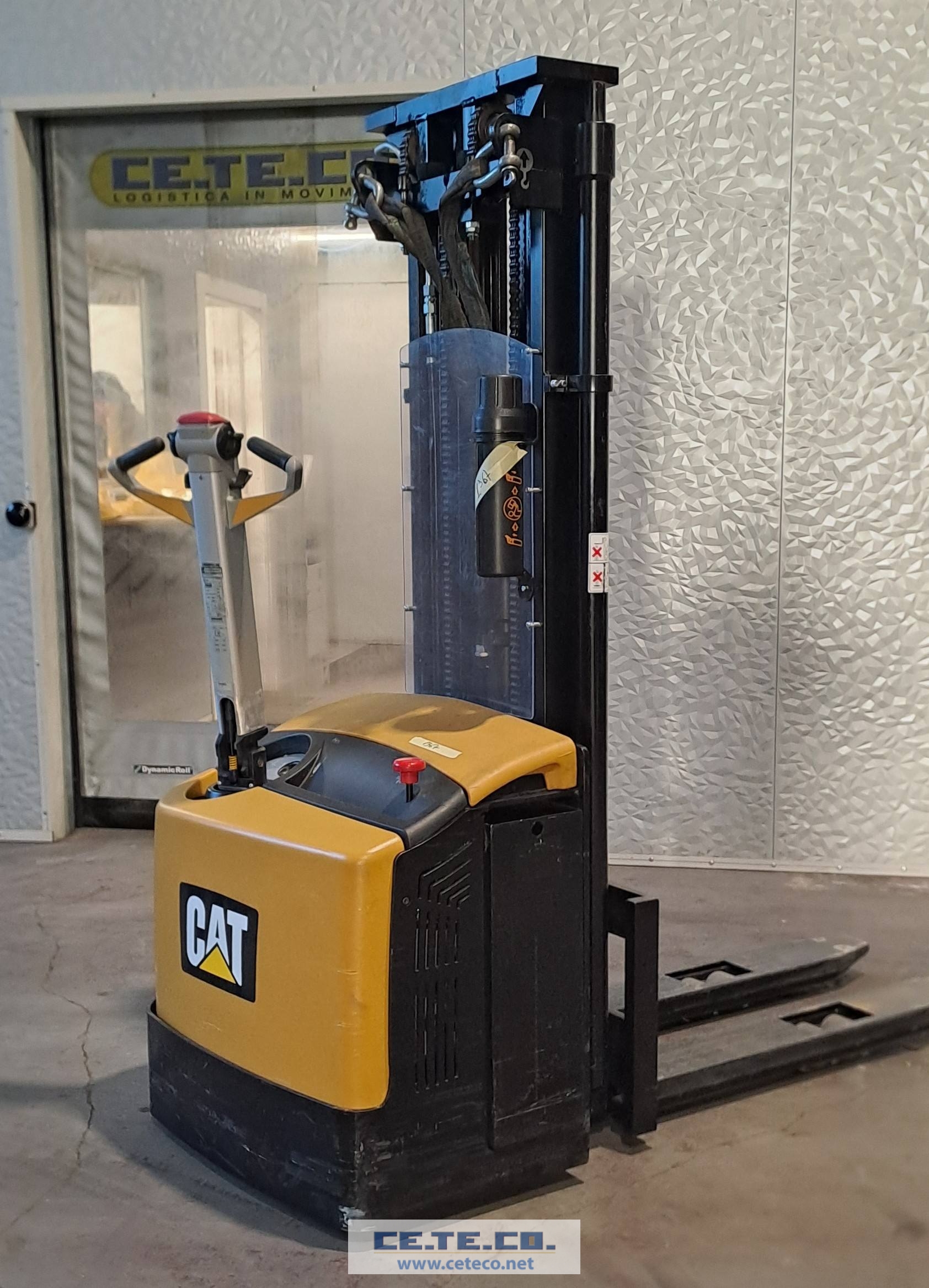 Transpallet elettrico a colonna Cat mod. Nsp 16 n , Txgal 4300 ( H1-2020 mm ) , batteria con auto rabbocco , anno 2012 , poco utilizzato . Macchina in ottime condizioni